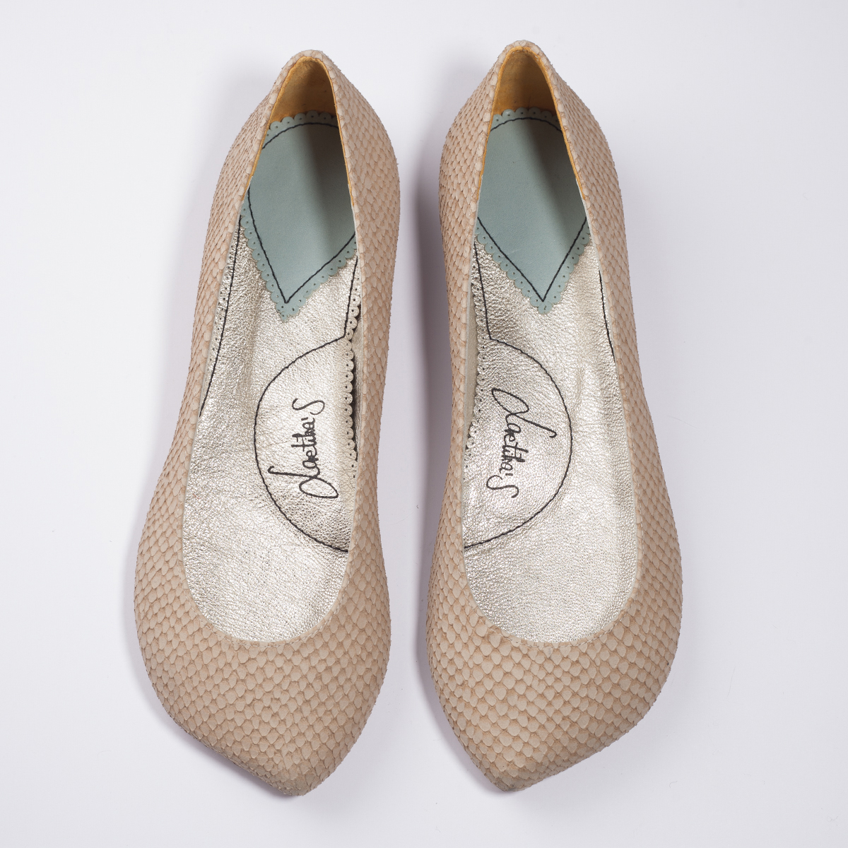 Bailarina plana en piel vacuno grabado efecto serpiente.