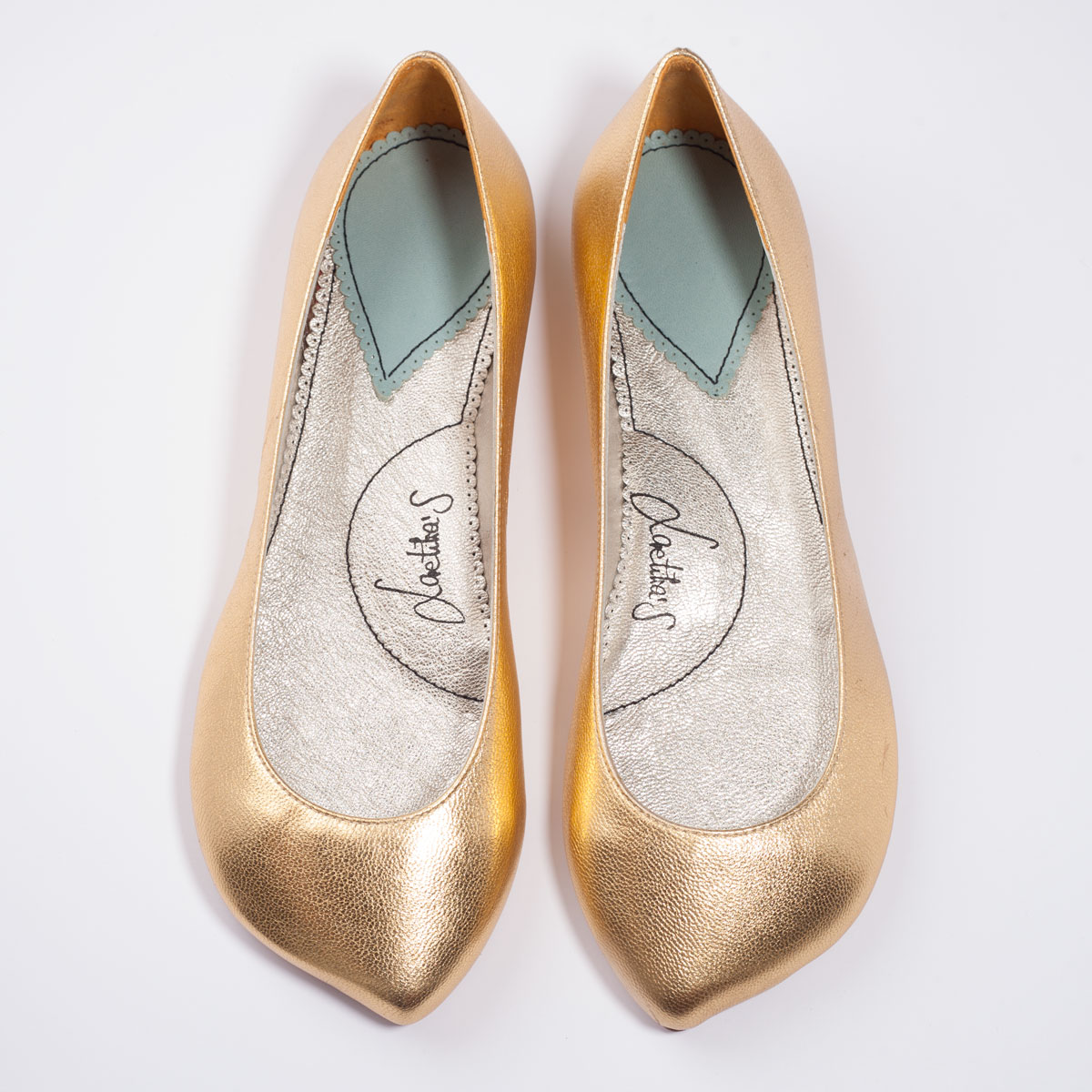 Bailarina plana en piel napa laminado oro.